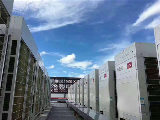 (2)外機(jī)是關(guān)鍵部分,從構(gòu)造上來看,它主要是由風(fēng)冷冷凝器和壓縮機(jī)組成。當(dāng)系統(tǒng)處于低負(fù)荷時(shí),通過變頻控制器控制壓縮機(jī)轉(zhuǎn)速,使系統(tǒng)內(nèi)冷媒的循環(huán)流量得以改變,從而對制冷量進(jìn)行自動控制以符合使用要求。對容量較小的機(jī)組,通常只設(shè)一臺變速壓縮機(jī);而對于容量較大的機(jī)組,則一般采用一臺變速壓縮機(jī)與一臺或多臺定速壓縮機(jī)聯(lián)合工作的方式。